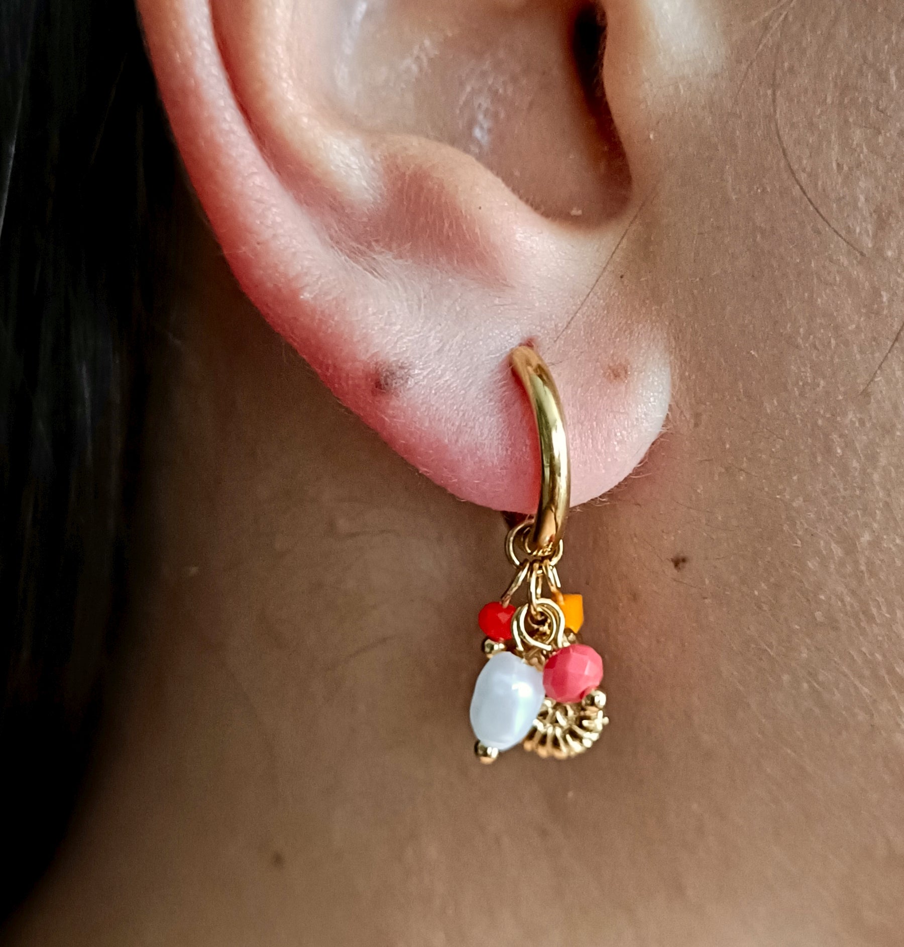 - Perle colorate: Mix di perle rosse, arancioni e bianche per un tocco vivace